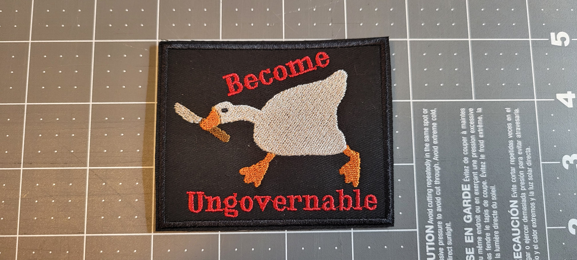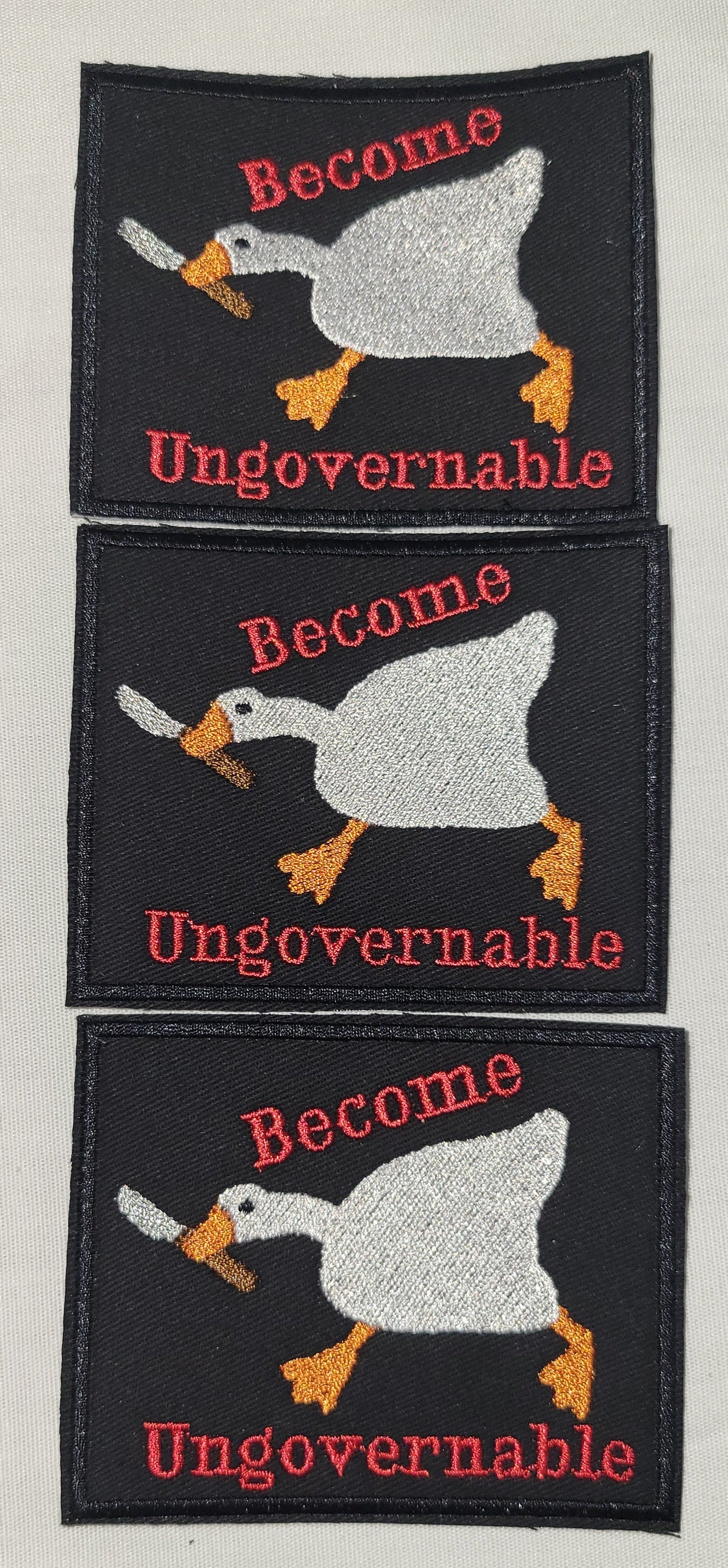 Put it on your backpack, jacket, or anywhere you want to declare your allegiance to the ungovernable goose brigade.